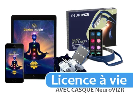 Achetez Genius avec le casque NeuroVIZR avec 30% de réduction sur NeuroVIZR. NeuroVIZR et l’application Genius Insight fonctionnent ensemble pour optimiser votre bien-être en suivant les recommandations NeuroVIZR basées sur votre analyse Genius. Activez le NeuroVIZR dans le menu Accessoires de Genius, puis lancez votre analyse Genius comme d'habitude. Choisissez les protocoles de lumière et de son adaptés à vos besoins depuis l’application : elle contrôle alors le NeuroVIZR en temps réel, lançant les séquences correspondant à vos objectifs, qu’il s’agisse de relaxation, de concentration ou de stimulation cognitive.